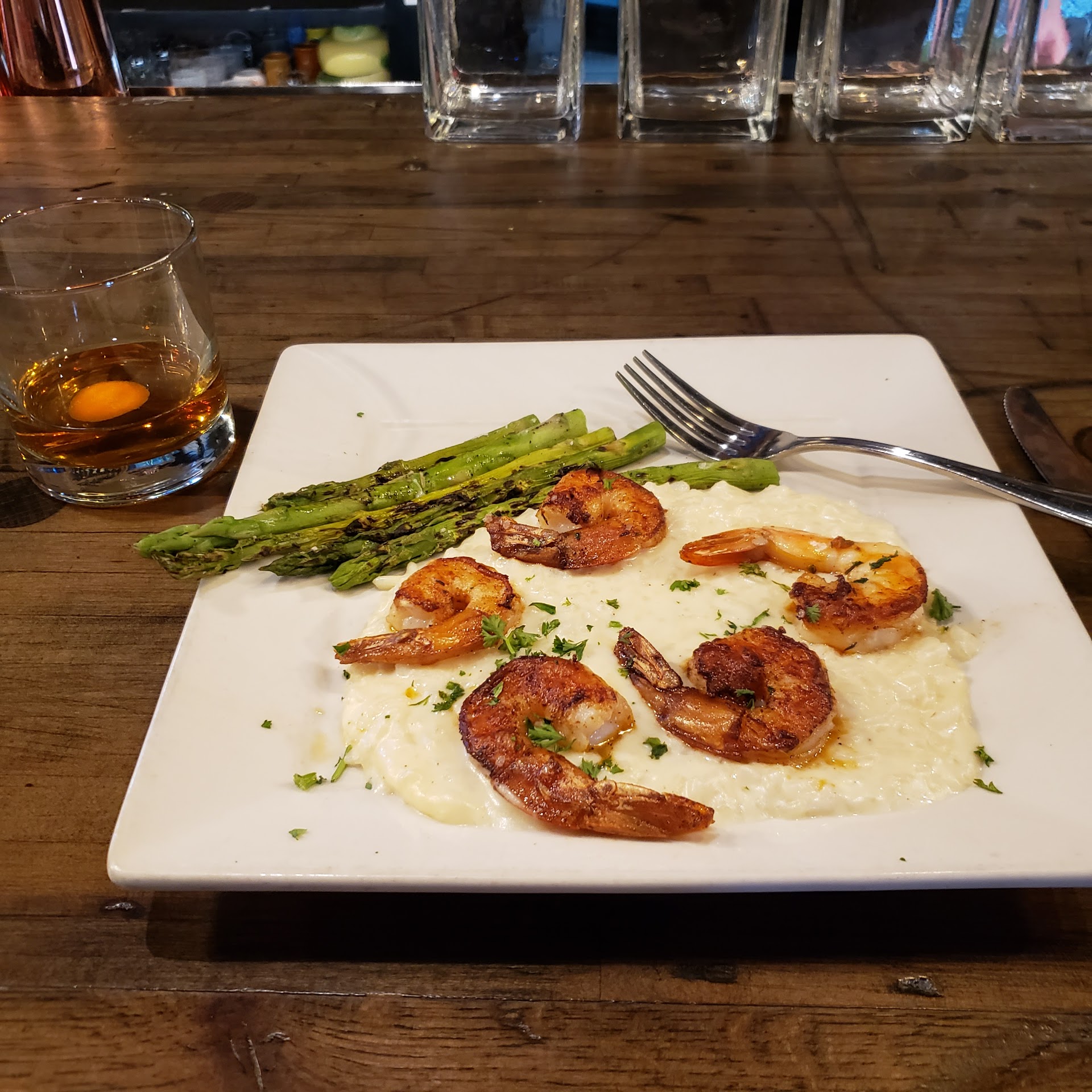 My family went to Scratch in Norman for dinner one evening and we so enjoyed it that I've been back with two different friends to share the experience. The service is what every restaurant should strive for, each visit gave me an opportunity to meet some delightful people who really seem to like what they're doing. Their knowledge of the menu and ingredients was impressive and I enjoyed their recommendations. The cocktail menu is huge, and each one I've tried has been so good, with house made syrups, uncommon liquors, and other interesting mixers. My favorite is the flower cup and it's garnished with a flower. However when the fresh flower isn't available they top it with dried florals, which I request left off. The spinach dip was excellent on our first visit, on my second it wasn't thickened, but it was still delicious! We also had the coffee pork, a cheeseburger, and blackened catfish. Everything was beautifully presented and the pork was perfectly cooked and tender, which applied to all our proteins. Everyone thoroughly enjoyed their meals, including the sides of pimento cheese risotto, Parmesan risotto, the most amazing carrots, gorgeous Brussels sprouts, and golden, crispy fries. We had their tres leches cake for dessert and it is also out of this world!! The second visit was for wine night, the wine was ok, but I wouldn't order it again. The charcuterie wasn't what I expected, it was just cubed cheese and salami and I was hoping for something a little more special with fancy cheeses and such. We split a filet and it was excellent, lovely seasoning and perfect temperature. My third visit we tried the crab cake app, the Cajun seafood pasta and the gumbo. My friend is a New Orleans native and was thrilled to see Crystals hot sauce. She was very complimentary of the gumbo. As for the pasta, I had to make myself stop eating. It's seasonings were so lively and the pasta was texturally perfection! I had to ask for more of the beautiful garlicky, buttery sourdough bread. The crab cakes were paired with arugula and I loved the bite with crab and remoulade. While we all thoroughly enjoyed the aesthetic of the restaurant, going to the restroom includes walking down a narrow hallway through a server's station. That felt awkward and it's an impossible situation because the bathrooms can't be moved, but worth noting for those with mobility...