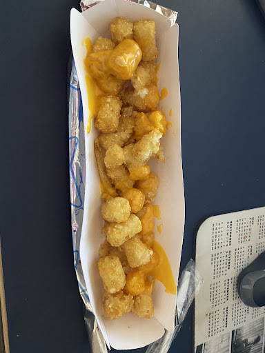 This was rather off-putting as you can probably imagine, but we again naively gave her the benefit of the doubt. Our next interaction of note, she was clearly rather annoyed by the sight of us, I assume she particularly dislikes us because my mother tends to have trouble ordering as she suffers from MS and often needs to correct her order. But while waiting for our food, Trish took a phone call. At the window. Where she talked on the phone for at least 5 minutes before she brought us our food and drinks. We received our hotdog obviously burnt. Not a little charred, not a little brown or red. Burnt. Don't give this to a customer and remake the hotdog, burnt. It's not hard to connect the dots on this one...