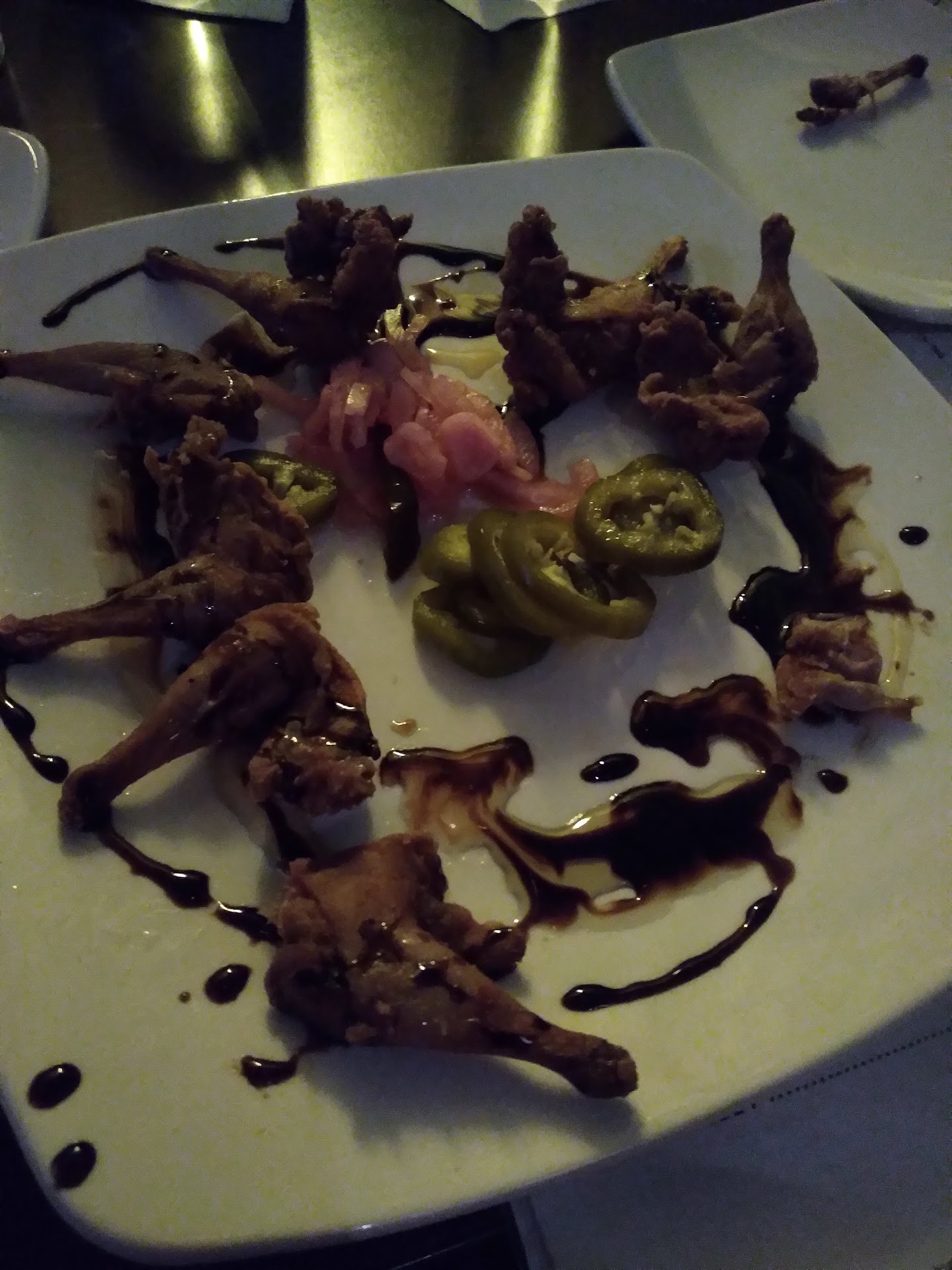 Went here for the first time and on first impression I was not happy. First thing I noticed was the music was a little too loud and the sound quality was bad, which is why I gave it a lower score on atmosphere. That being said, I looked over the menu and immediately saw I dish I wanted. The seared Ahi. It looked like a fantastic dish, I was already decided on that before I picked an entree. For the entree I went with the fried duck. It was average. To be fair, deep fried duck is the most difficult way to cook it. It's near impossible to get a nice fried crispy outside and not overcook the duck. It was a little over spiced, and definitely overcooked. The duck flavor was just not really there anymore. It was good for sure, but more like an above average hot wing. Then the main came out. It totally changed my initial opinion on the whole experience. The Tuna was cooked absolutely perfect. Beautifully seared and a nice crust. The tuna, the noodles, the miso and mushrooms, they made a fantastic dish. Tuna was a bit over salted, noodles were a little overcooked, but that's being very critical because that's the only thing that kept the entire dish from being perfection. Pinch of sugar in the crust would have added a nice color and taken away from the salty bite, but it was still amazing. I devoured every bite of it, scraped my plate clean, and was tempted to order another. It wasn't just food, it was a drug. I paid my bill and was ready to leave, but decided to stop at the bar and enjoy the ambiance a little longer. Sound is still a little rough, but was enjoying the lighting, deco, the super friendly staff. So I ordered a drink. Just like the food, my drink was spot on, near perfect. Definitely overpriced, $10 for a Moscow mule is steep, but it was good, so I ordered another. Tabbed out and headed out the door, and the vibe on the patio wouldn't let me leave. Good music, nice lighting, comfy couch. Ended up just sitting there enjoying the atmosphere for a bit before I finally headed home. Very enjoyable experience overall. I will definitely be back and bringing friends. Thank you guys for a great...