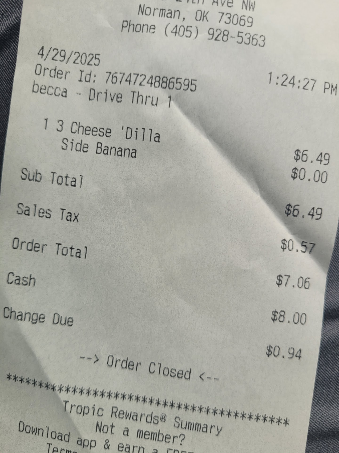 I don’t know how hard it is to: *make a single bacon, egg, and cheese burrito *to correct THEIR mistake *know they should at least offer me a a refund for the difference in what we ordered and what we were charged *to apologize to the customer