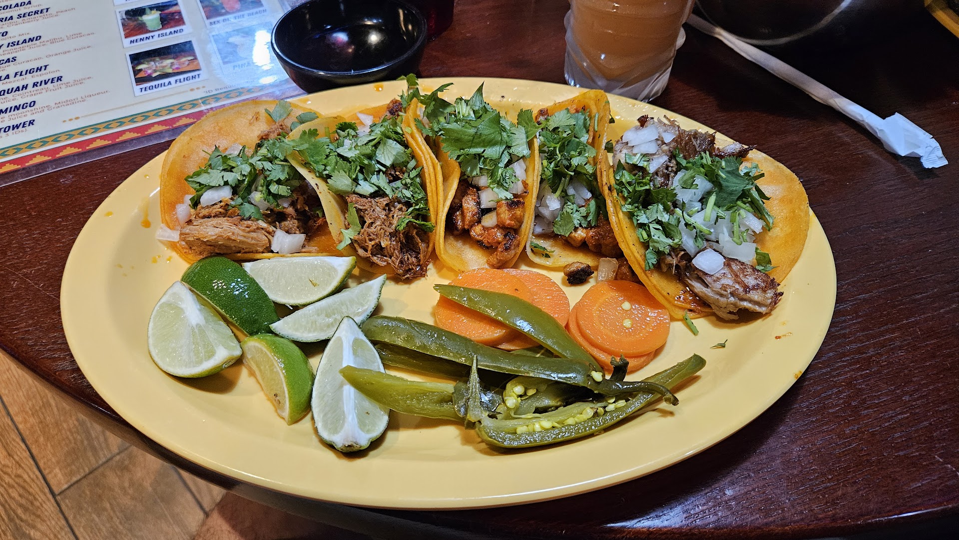 Read moreFirst impression walking in, wasn’t that great, a sign hanging to seat self in bar area and no one at the bar area. I was also looking to sit somewhere more alone. I’ve been told several times I needed to try this place and I finally getting the chance to. Waited several minutes to be greeted and waited on, which they just opened and it was just me and other person so far. I got a mojito and it was so big and great tasting. Whatever chips and salsa they brought to me was very spicy, and I normally love spicy. I ordered a #11- 1 taco, 1 gordita, 1 enchilada, with steak for the meat. Before I ordered this plate I asked to make sure there were no beans on it, and in the Gordita there was refried beans. I get a lot of Mexican food has beans but that’s why I asked before I ordered it and I would have asked no beans and if that wasn’t possible I would have ordered something different. The taco was good I just wish I knew it came on a corn tortilla I would have asked for flour, but it was still good. I wished the waiter was informative when taking my order and making sure I was okay with everything coming on my plate. I’m not a fan of the red sauce on the enchilada but still ate it because the meat inside was good. I had the hardest time picking around the beans in Gordita. I’m not impressed with it being my first time here with the customer service. I feel like the tables and the bar is way too close, the party of all males that came in was way too close to me for comfort. With all that being said after I finished my meal I still had chips left and decided to order a side of queso because every Mexican restaurant should have a good queso, it was really lukewarm. From this first experience I wasn’t much impressed over besides having a...