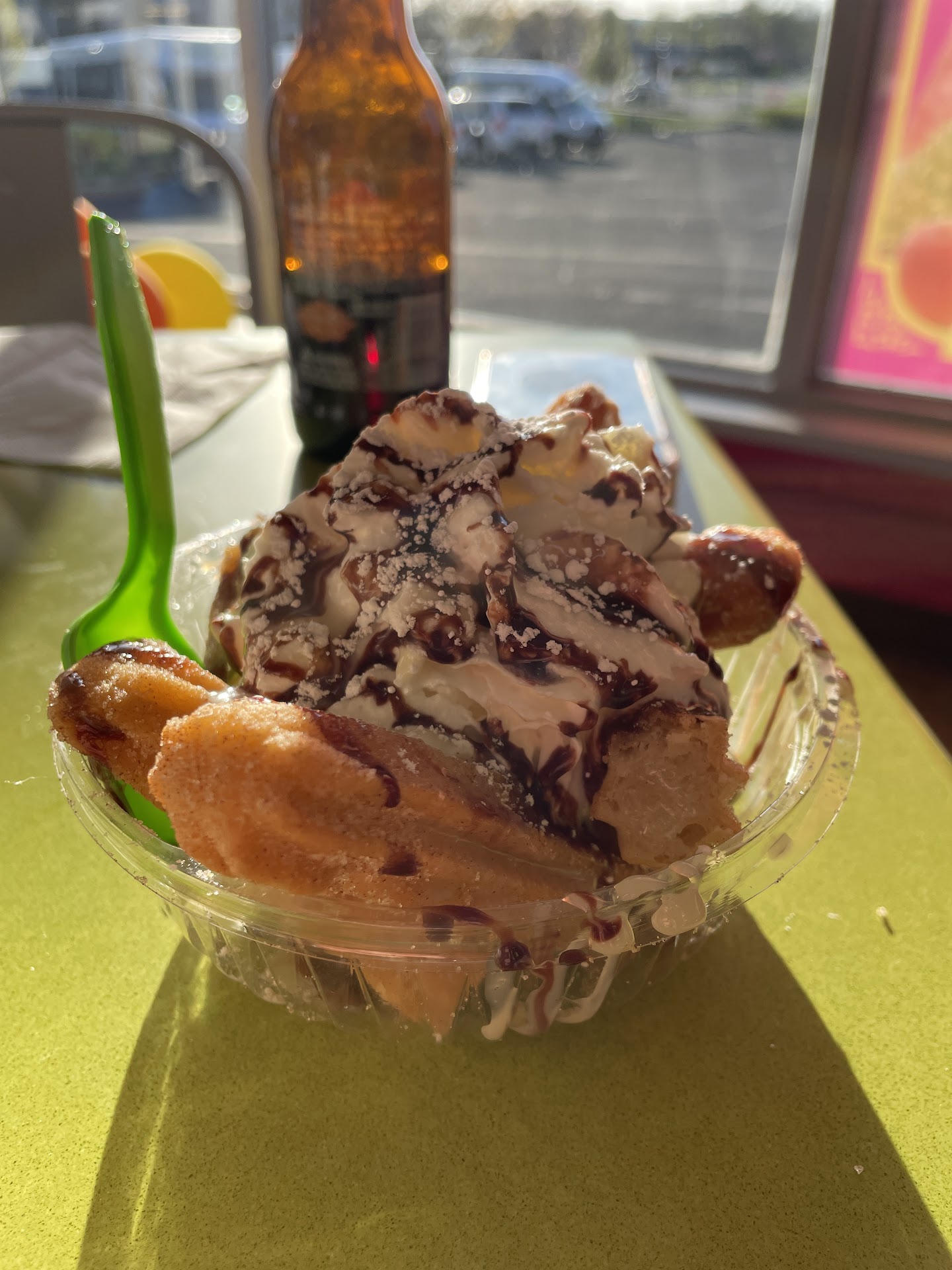 I love that it’s locally owned and had 5 star reviews. Upon arrival, L.S. is bright and super clean. There are SO many varieties of ice cream. The girl behind the counter let me try as many flavors that I wanted and even some I didn’t know I liked… When I saw that they had pistachio homemade I that I knew this was my spot! I ended up ordered a scoop with churros topped with chocolate drizzle and a whipped cream! I was in absolute heaven and will definitely be visiting here as often as my waist line let’s me, lol....