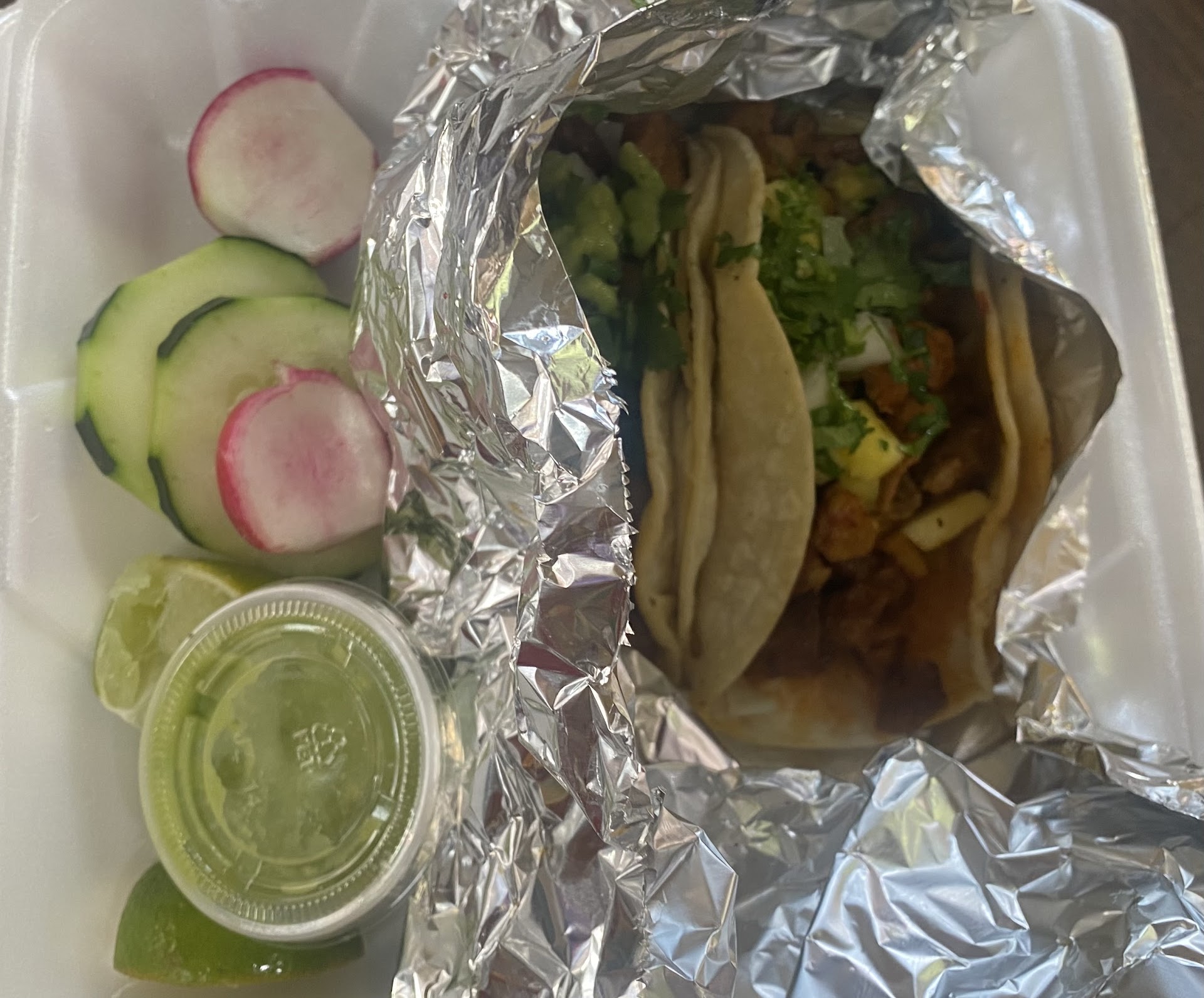 Read morePopped in here for the first time to order some Al pastor tacos to go. The wait wasn’t long at al and my food came out hot and fresh. The salsa verde is delicious. Next time I go, I’m definitely asking to buy some containers...