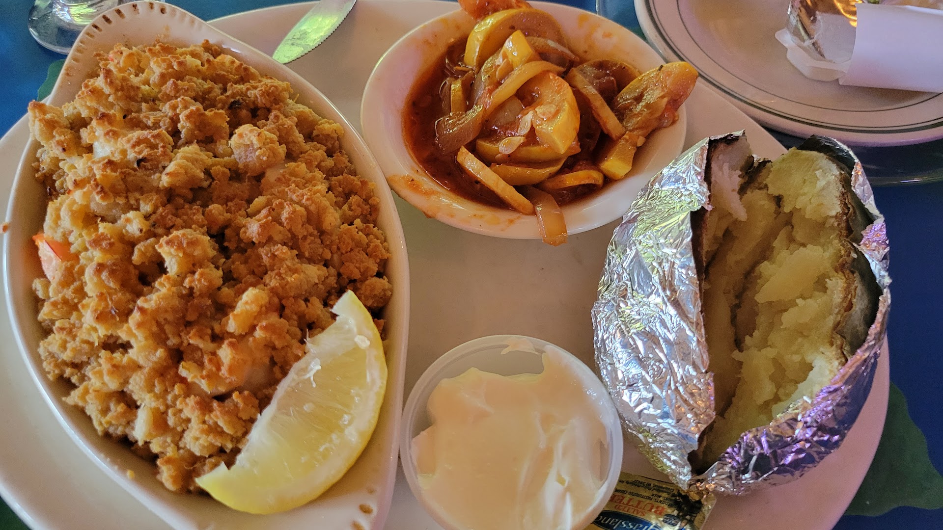Read moreWhen we were seated we were pleased to see that there are plexiglass partitions between each booth. We like that as it feels safer from Covid and other contaminates we might get exposed to in a public setting. I ordered broiled haddock and my husband ordered broiled stuffed haddock. Both dishes were quite good. I was disappointed with our server. We hardly saw her and had to wait much longer than expected to get our drinks, then another long wait for our order to be taken. After we were finished with our meal we waited an extremely long time to get our check. Eventually a different server took care of it for us. We appreciated her help. Our server finally entered the dining room where we were sitting as we were leaving but never acknowledged us or thanked us for coming. I used to be a waitress and trained the wait staff where I worked. Something I enjoyed very much. Helping a young person who had never done this type of work and helping them be a successfully appreciated server. This server needs...