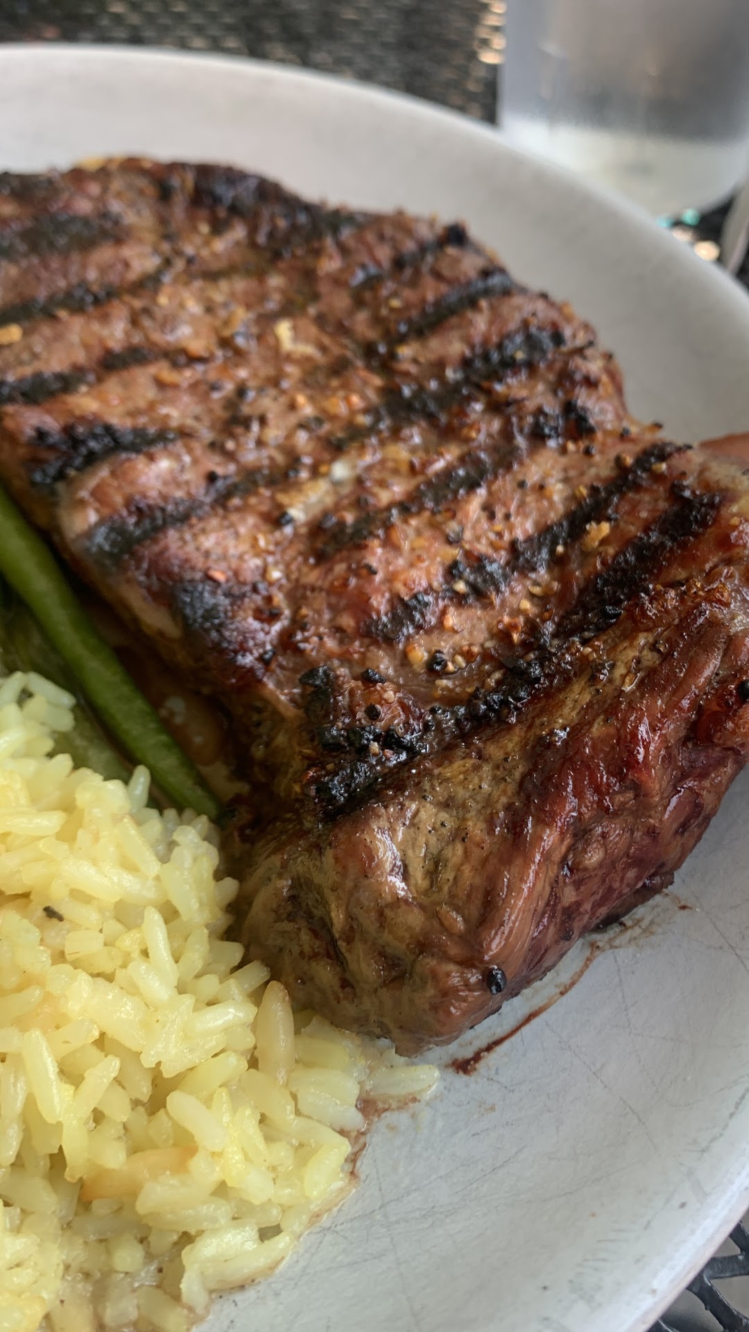 Yvonne was already dealing with several tables including a table of bikers and yet she still nailed our orders and had them out promptly and offered us water top offs regularly, seeing how dehydrated my friends were. She even refilled water bottles with water without us suggesting or thinking it. I got the steak, which was hefty and filling but could have used more seasoning than just Montreal (still loved it, but this is a review after all) and my rice pilaf was surrounded by a puddle of grease or butter.