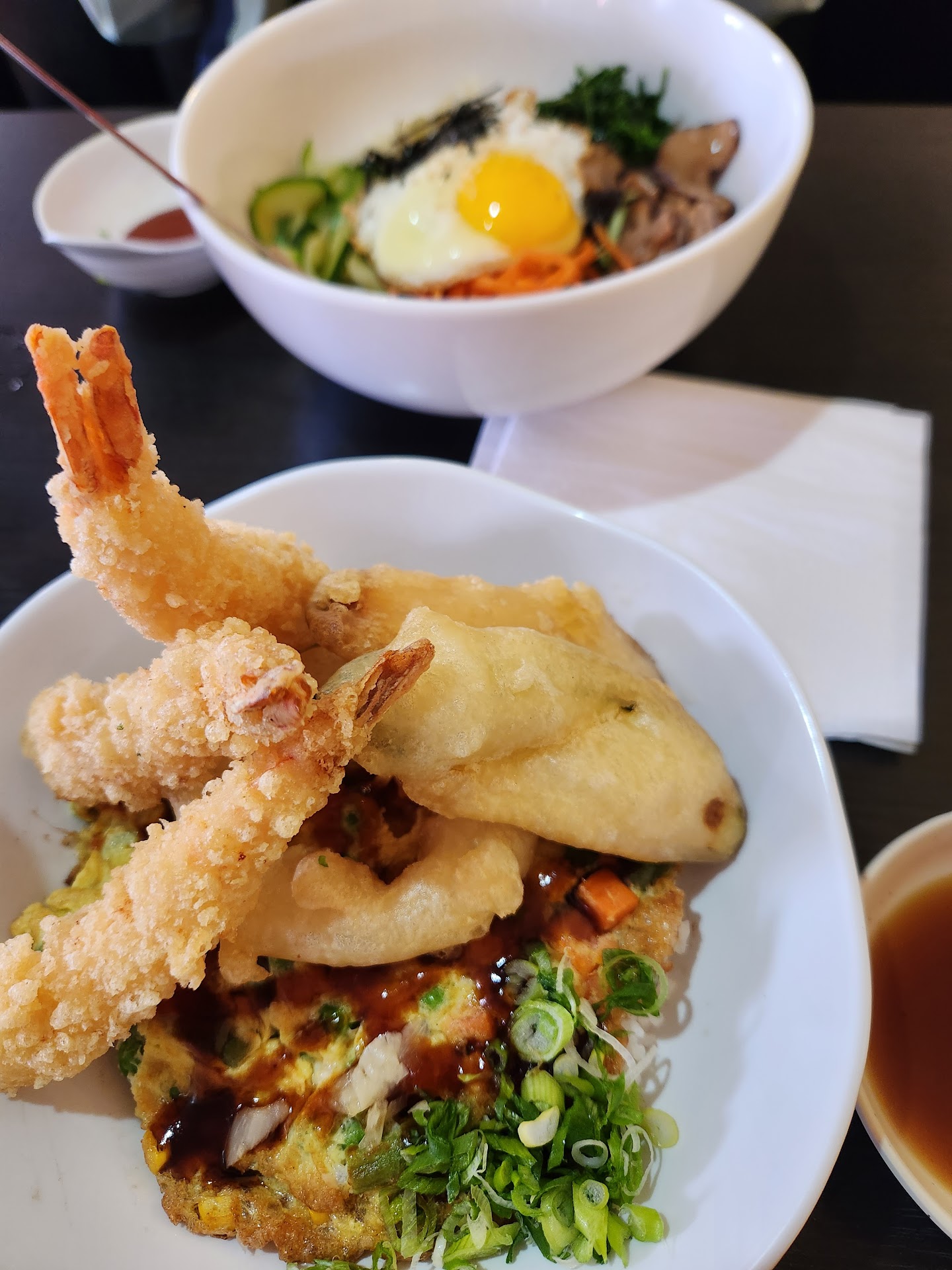 Read moreAbsolutely the freshest ingredients, prepared beautifully at a very fair price. Miso soup was what one might expect (nothing unique) but flavorful and decent volume. Tempura with the egg dish (2 large pieces shrimp and 2 large vegetables for lunch size) had zero greasiness or uncooked batter; it was perfectly cooked. Egg pancake with peas, green beans, scallion carrot, and onion sat on top of rice with tasty mild sauce. Bimimbop (might not be spelling this correctly) was a stunning looking dish. Tuna roll was fairly priced with very fresh chunks of tuna. Wasabi was on the hot side of what I've had elsewhere; but it was still edible. I think other places may have been dumbing down their wasabi. Companion and I both took home leftovers. Only a few patrons there around 2 pm for lunch.