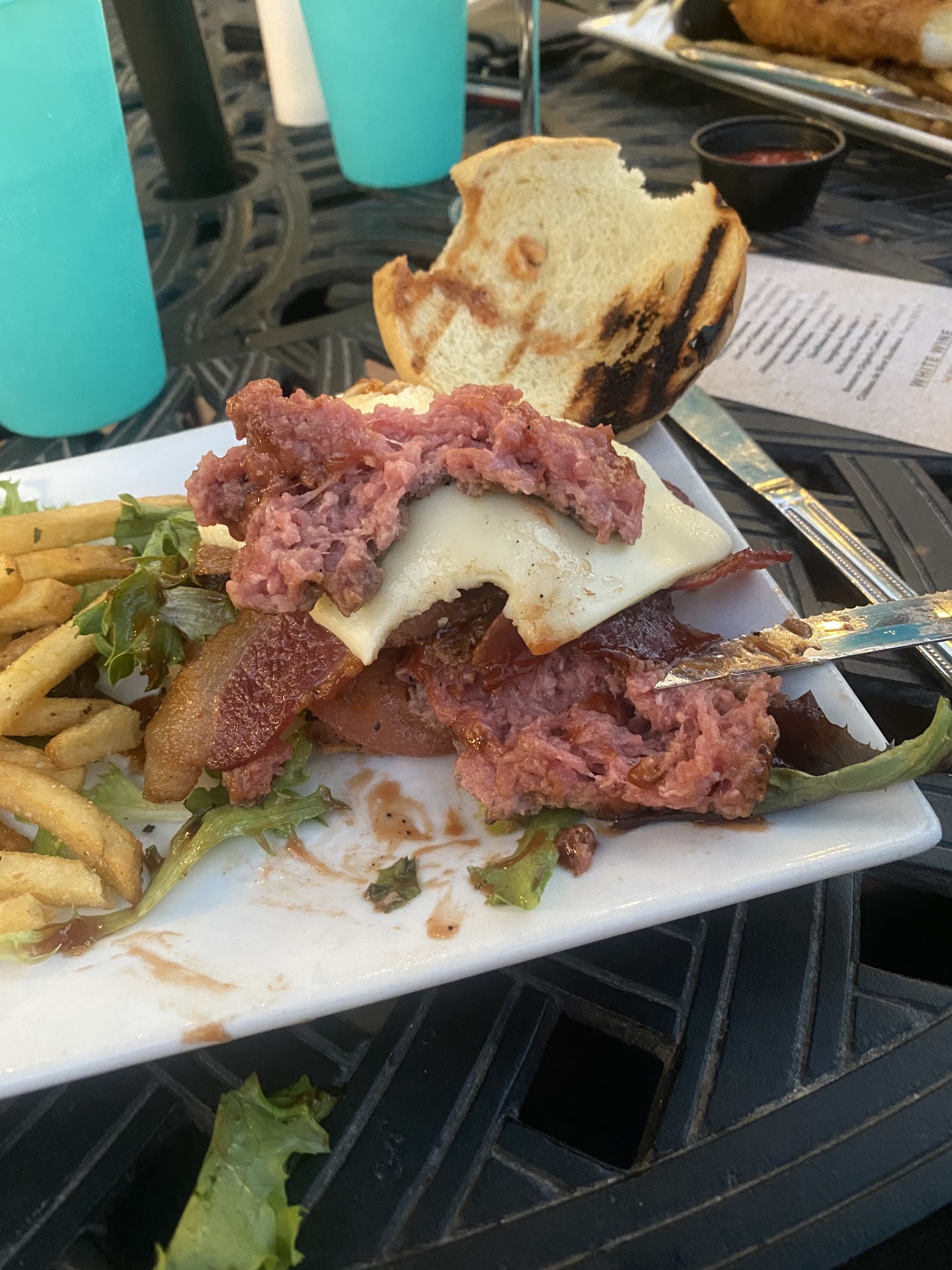Tonight I was served a completely raw burger (pictures included). Needless to say, this was unacceptable, and I appreciate our server Savannah quickly resolving this by offering me a different entree (a steak sandwich). While this entree was safely cooked to the temperature I specified (medium rare), it generally exhibited little care from the kitchen. For one, I could tell it was poorly seasoned (unsure if too lightly seasoned with salt/pepper or entirely unseasoned), and not well rested prior to serving. This resulted in juices pouring out of the steak, which should be retained after proper resting. My friend’s meal (fish and chips) was similarly poorly seasoned.