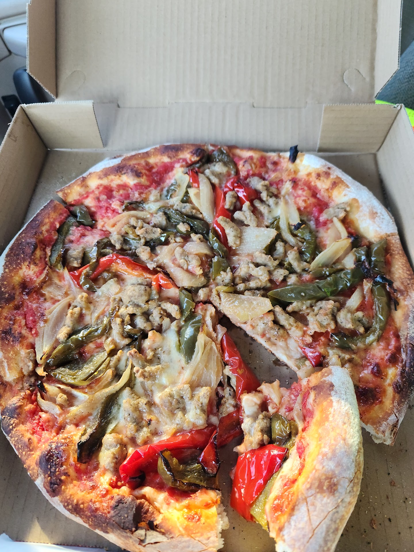 The pizza (The Bronx Tale) was average. Not a lot of flavor, crust was stiff near the edge, but very floppy in the middle. I hate getting shotchanged on toppings, but overdoing it is equally as bad. Far too many peppers and onions.