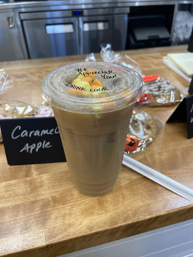 I didnt rate the atmosphere because its inside a market and I didn't want to downgrade my 5 stars. That being said, it is tucked in the back of a little market so theres no ambiance or cozy sit down, which is fine for me I dont sit at shops. But they did have amazing treats in the case. I think I got some kind of iced pumpkin muffin (my son pointed to it so i dont recall its name). I ate the whole thing, since he doesnt like pumpkin, and it was delicious! Next, the coffee. I came here after seeing some recommendations on a Facebook food group. I ordered the fluff style specialty coffee and (after having had had lunch at Brix) i went back to get a different specialty flavor. The cups were cute and came with spooky themed stickers. Staff was knowledgeable about their items, even swapping out a cold brew for regular iced coffee. They may be a tiny shop but the coffee...