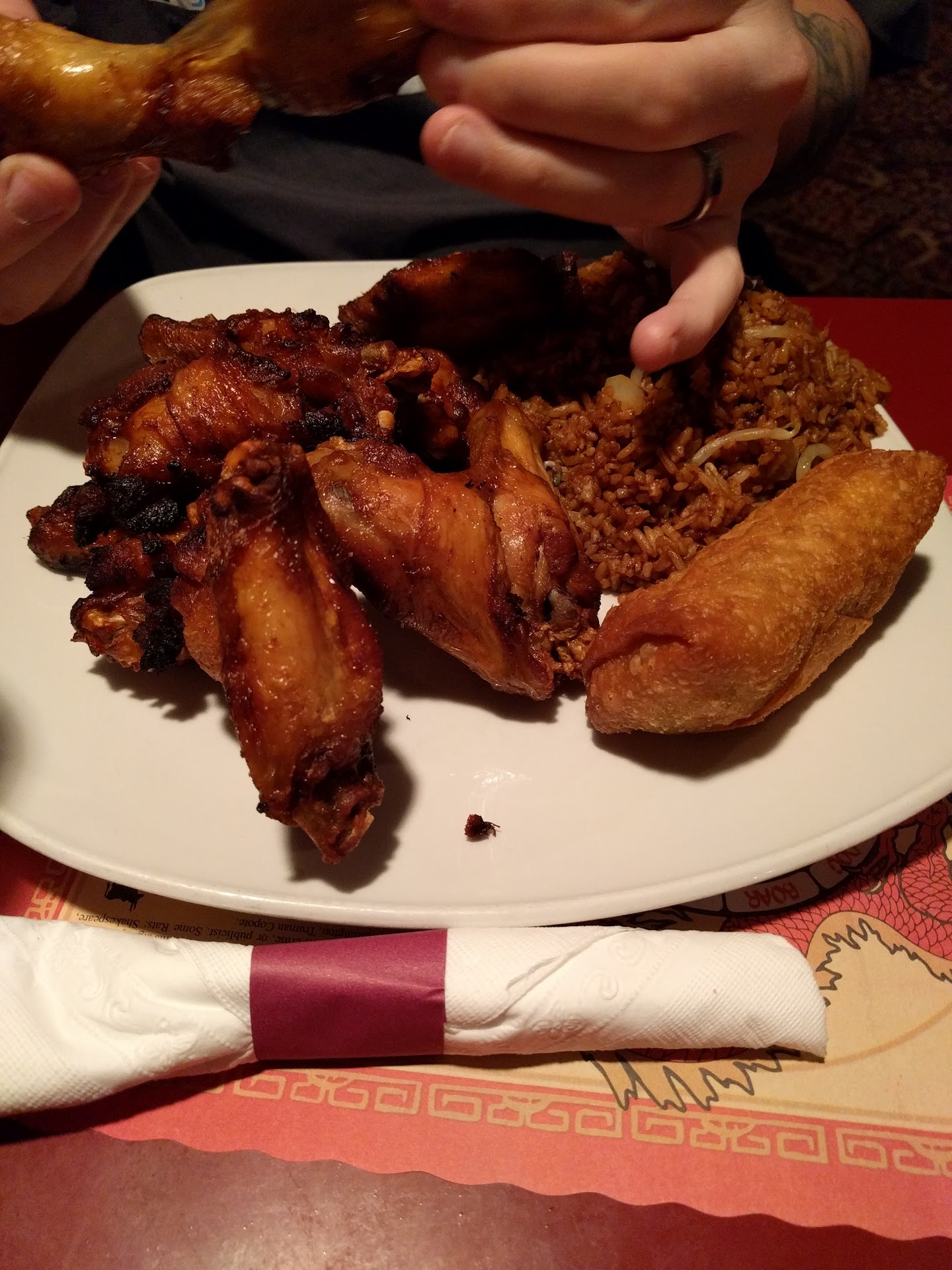 Read moreJust to set the scene... we went on New Year's Eve so the experience may be different from the norm. Waited about 30 minutes for a table. Not bad considering the date. People were getting frustrated waiting (sometimes an hour or more) for their take out order. The staff did explain that they were behind with orders and despite some pretty rude customers the front of house staff did a good job controlling a rather large wait time. The food... when we got our starters they were only warm. Not quite cold but close. I tried to order General Tso chicken without vegetables but was told that since there were no substitutions allowed that I would get what was already prepared. The waitress seemed genuinely frustrated at this but I did not push the issue. What concerned me was that simply not including broccoli in my dish was an issue for the kitchen. Made it seem like the food was not being cooked fresh or in large batches. When the entrees we ordered did arrive it was VERY hot and was ok. The General Tso sauce was plain and had little flavor to it. The rice we ordered was good. Chicken wings were good and very hot. The portions were very generous. Overall I would have rated the experience 4/5 if it were not for some genuine concerns over the food and their preparation for what they must have known was going to be busy. Would not give a 5/5 for some blandness in the food itself. Probably won't visit again as I have had much better food in other...