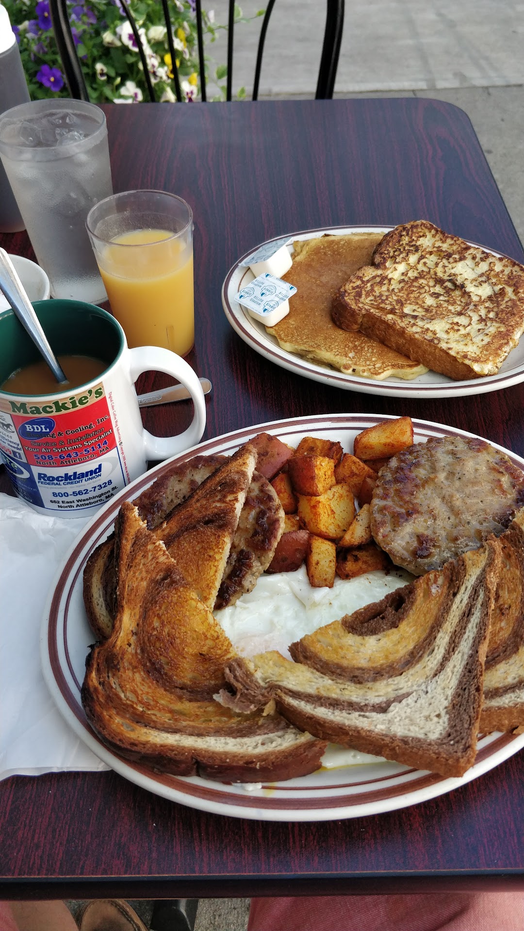 I wanted to support the local restaurants in the surrounding area during the pandemic, so I ordered takeout breakfast this past Tuesday from Mackie's - one of our family favorites. After calling in and ordering an omelette, I headed down to pick it up, being sure to wear my cloth face mask.