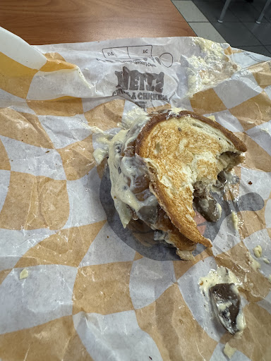 Read moreOh boy - where to start....So we stopped through for a "fast" burger and a pit stop. When I came inside, there was a line of 5-6 people - which I figured couldn't take too long.....wrong! While the young guy working appeared to be relatively new (and it's never fun to be new), he had to flag down the manager a few times to help with orders. The manager was pretty busy and obviously flustered.... After about 10 minutes, I got up to order. I ordered a couple fish sandwiches and a chicken burger to go. I hit the bathroom - which was out of paper towels. I mistakenly assumed that things had to go up from here. Nope.....10 minutes after ordering, people after me were getting there food. I was told my food was coming. After another 10 minutes, it was pretty obvious they forgot about my order. I flagged the guys down and it was confirmed - burgers were ready, but they forgot! So, after about 35 minutes - we were able to take off from the "fast food" restaurant. They didn't throw in any napkins, but at least they got my order right!