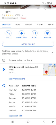 I visited North Bend KFC tonight and will never return. Online hours said open Wednesday till 10pm. I made a 20 mile drive to this location from up Coos River to buy my family dinner. Arrived at 9:45 pm. I was ignored at the drive thru and everyone at the window looked at me 3 people and turned their backs towards me laughing and talking bad about the person at the drive thru. Sitting there I could hear every word through there thin glass window. I started to say, "Hi. Excuse me", and they continued to ignore me. I eventually had to do some courtesy taps on my horn and said again, "Excuse me" and they continued to ignore me as if they couldn't hear me (I'm sure). Finally, one of the men opened the window after getting angry talking ill of the customer at the window and I said "I'm sorry but I was wondering if you wefe still open?" He said "No! We closed a long time ago!" I said "Oh, I'm sorry, I drove over 20 miles from uo the river because your online hours show you are open until 10pm. Are you not open till 10?" He stood there then turned his body away from me looking off to the side then looked back at me and said "Well...... I dont know what to tell you! We already threw everything away." (Which they didn't they were standing at the heating rack pulling chicken from it as I sat there and watched. He then told me he would tell his manager to fix the hours. Huge inconvenience waste of time and gas could have gone somewhere else not to mention Rude and impolite service!!!!The tone of voice and the way he spoke to me was unprofessional with an attitude when he shrugged his shoulders and body expression. I will not return here again. Usually when I come through I always spend over 50 dollars a meal time easily for a family of 7. They could have been a lot more polite and handled the situation situation lot better after all I WAS the one inconvenienced and wasted a trip its not like they honored their hours and served me the food anyway.. so I don't u destiny why they acted so put out.. Terrible enoloyees. HERE ARE PICTURES OF THEIR ONLINE HOURS THEY SAY WELL I DONT KNOW WHAT...