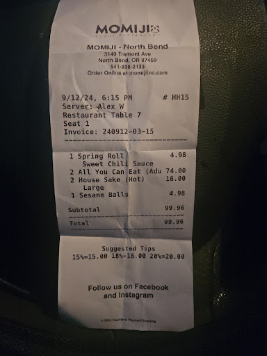 Read moreLike Coos Bay, there are so many quaint little places where you can get a good meal. Momiji is another one. From first glance, you may be deceived. It's not the most appealing to the eyes. It could use a little makeover, keeping things clean, carpets swept, bussing tray out of sight. And this is why it's important: The one thing that people care about when eating sushi is "is the fish fresh and clean?"