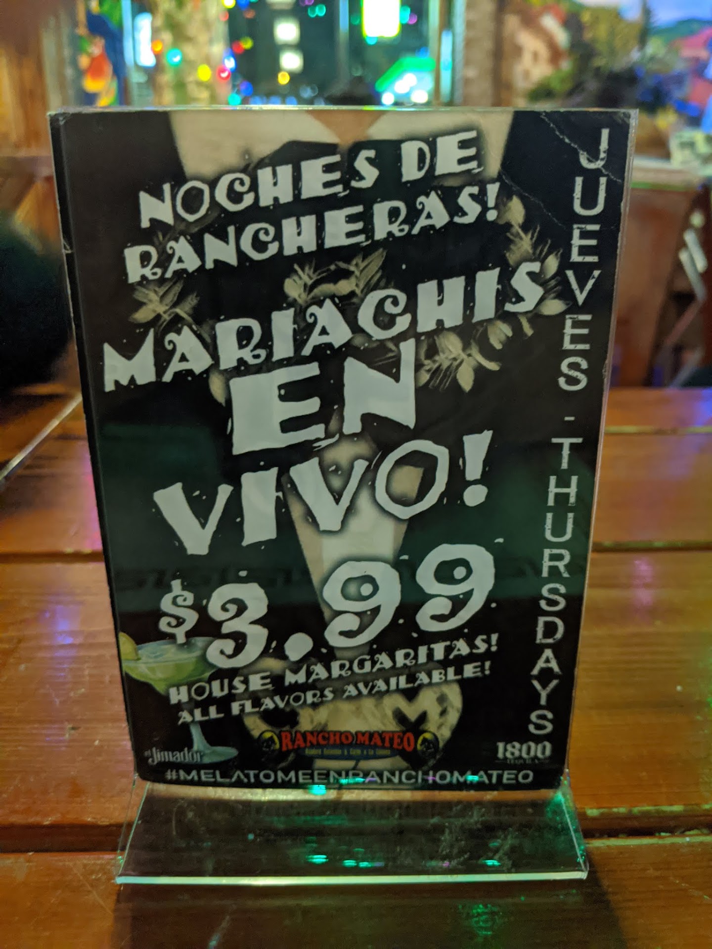 Ojo, cuidado, atención con los jueves de mariachis, ellos ofrecen las margaritas a $3.99, pero en ningún momento el/la meser@ le explica al cliente que el precio por margarita va a aumentar $2 si quiere que la margarita sea granizada (frozen) o si la quiere michelada (salt on the rim) o si la quiere con sabor. Incluso tienen un flyer en la mesa que indica que: ''Jueves de mariachis, margaritas de la casa a $3.99, todos los sabores disponibles'' y como es común en otros negocios no hay ni un asterisco, ni una estrella o una cruz indicando que puede haber un incremento en el precio si la bebida es modificada.