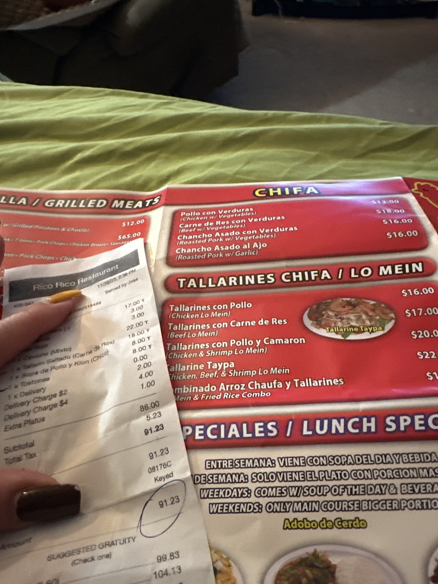 Siento decir esto pero La atención en la mesa fue en mi punto de vista horrible porque pedí el menú y no te ponen un vaso de agua ni de hielo tuve que preguntar por ello porque lo más inadecuado que no preguntaron si deseaba beber algo después de pedir la comida en fin he ido a otros restaurantes peruano pero si hay mejores y con muy espectacular atención La chica sentada en el mostrador del cajero la entiendo que debe estar ahí porque no hay más meseros pero no hizo su trabajo buen en el servicio no pregunta si necesitas algo más o recogen la mesas en fin más parece un comedor obrero que un restaurante para desconectar fue día entre semana no se el fun de semana como seria esta localizado en North bergen pero el dueño o el manager me pareció muy amable.