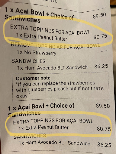Negative: Parking can be a little frustrating to find. I sometimes have to double park and run in and out . This is a positive and a negative. I had a strawberry salad there once. And never again saw it 😭 it’s not the same one that’s on the menu and I forgot to take a picture of it. I want to say that maybe they had run out of some ingredients and had replaced them. Anyways , great salad but never again saw it made the same .