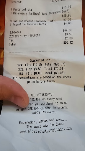 When the bill arrived, a 20% tip had already been added without any prior notice or consent. Iâve never experienced that with a group of just four people.