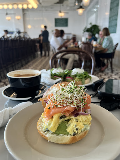 Two standout savory dishes were: • Smoked Salmon, Avocado & Egg Sandwich: Smoked salmon paired with creamy avocado, scrambled eggs, red onion, capers, and alfalfa sprouts, all layered on a housemade challah roll with a fresh green herbed dressing. A hearty yet refreshing sandwich. • Croissant Breakfast Sandwich: A buttery, flaky croissant filled with egg, Vermont cheddar, sliced tomato, avocado, and baby arugula. Light, satisfying, and very well balanced.