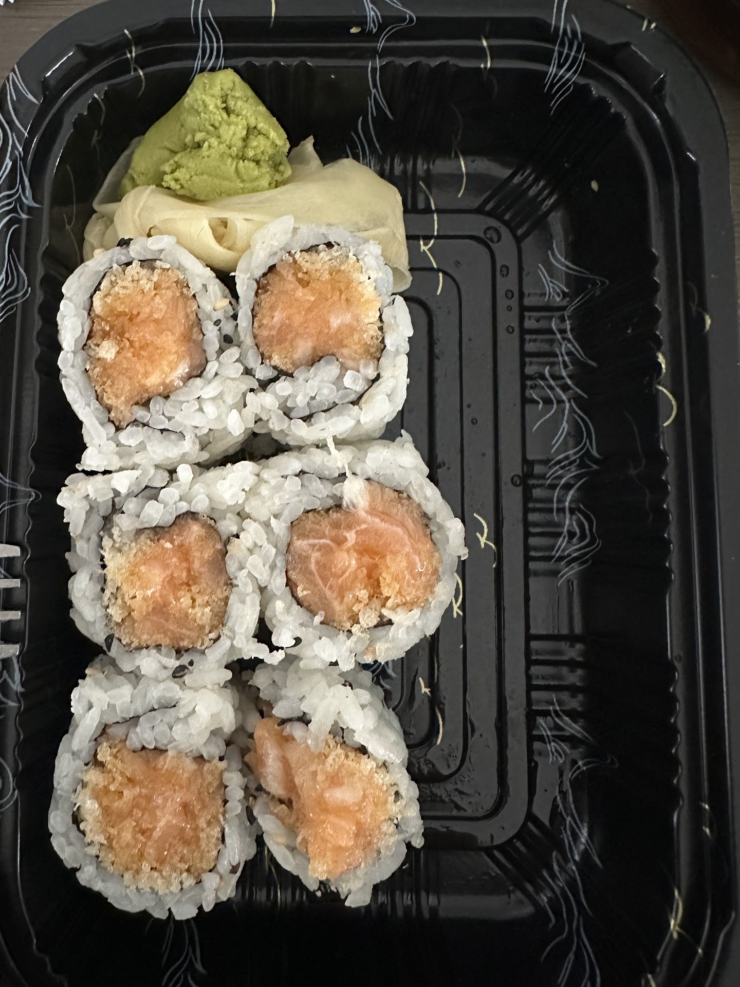 Good grief the food was awful! My husband and I got 4 different rolls and each looked and tasted almost identical. His BMW roll didn't even look like fried tempura. It looked soggy and nuked in a microwave, maybe? They all had some sort of unsavory filling we've never seen before that resembled canned tuna fish and canned salmon... pasty, dense.