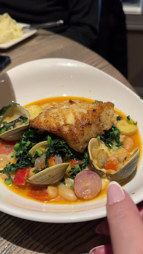 The last dish ordered was the Chilean sea bass special, served with clams and spinach in a light broth. It was exactly what my friend had hoped for based on the server's description, and she said it definitely lived up to its flavorful promise. The presentation was also impressive.