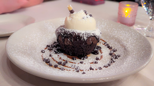 The good news is the food is absolutely fantastic. The risotto was done perfectly as was the pork chop. Both or delicious meals and we thoroughly enjoyed them. Once completed we waited almost 10 minutes for our plates to be cleared and the waitress to come over and ask us if we wanted dessert. I indicated yes. We then received our dessert menus and I clearly asked if this was going to take good period of time to get or whether everything would be ready quite quickly. She explained everything would be ready quite quickly. Well, my espresso and my wife's cappuccino both came. Our chocolate bomb cake did not. I finished my espresso and my wife was half done with her cappuccino before the chocolate bomb cake ever arrived. The coffee's and the dessert were fantastic in taste.