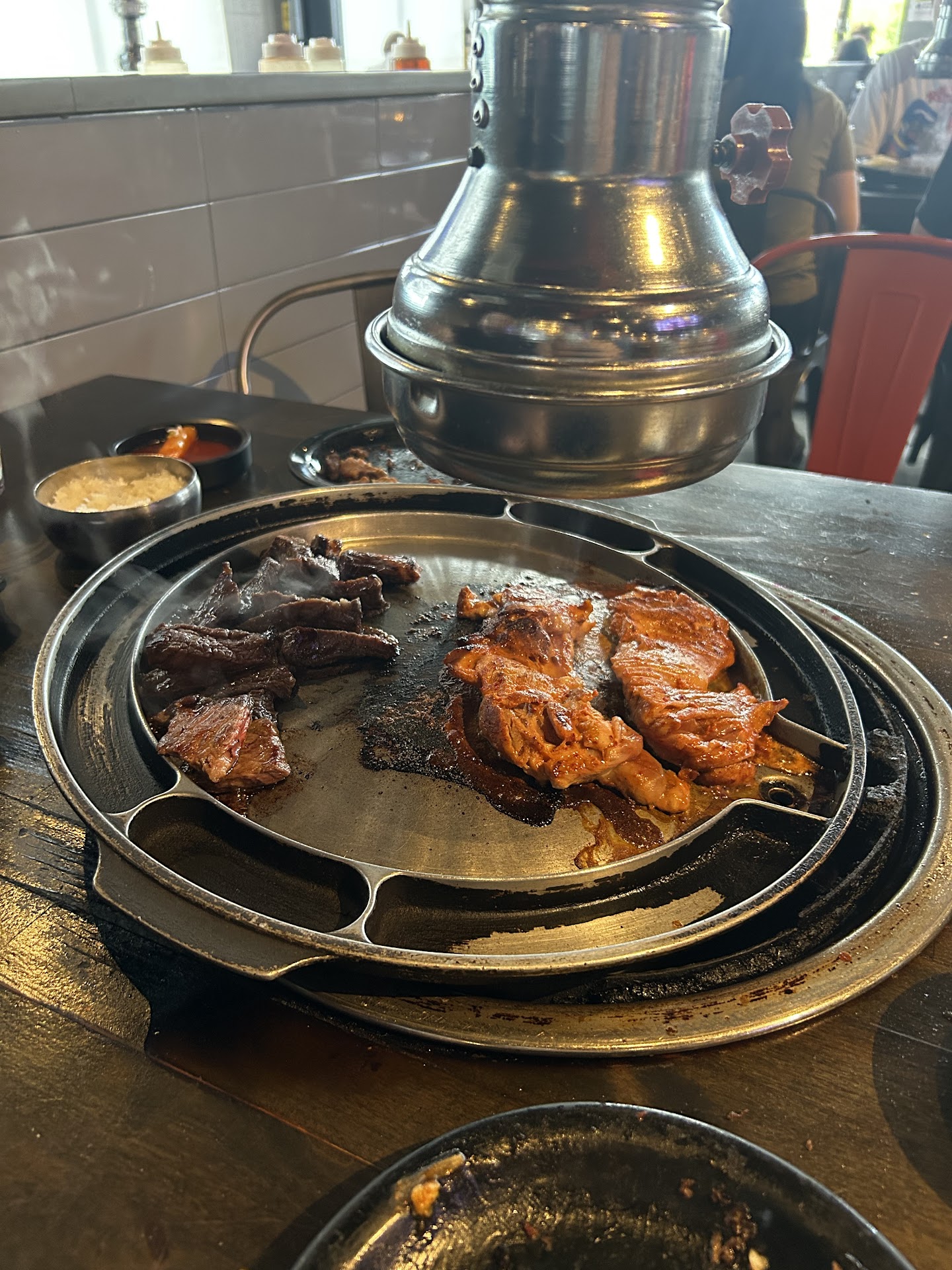 With that being said we came in during memorial weekend so we waited about 20 mins to be seated. What I enjoyed about my time here is that even though we knew what we wanted we were not rushed. The menu says there is a 2 hour limit so we were worried but our server treated us so well thank you Euyjun L you are the best. He took very good care of us. The meats were great we ordered the spicy chicken, beef Bulgogi, prime rib, and the 360 steak. The beef bulgogi was our favorite. I liked that they had sauces as well to pair with the meats.