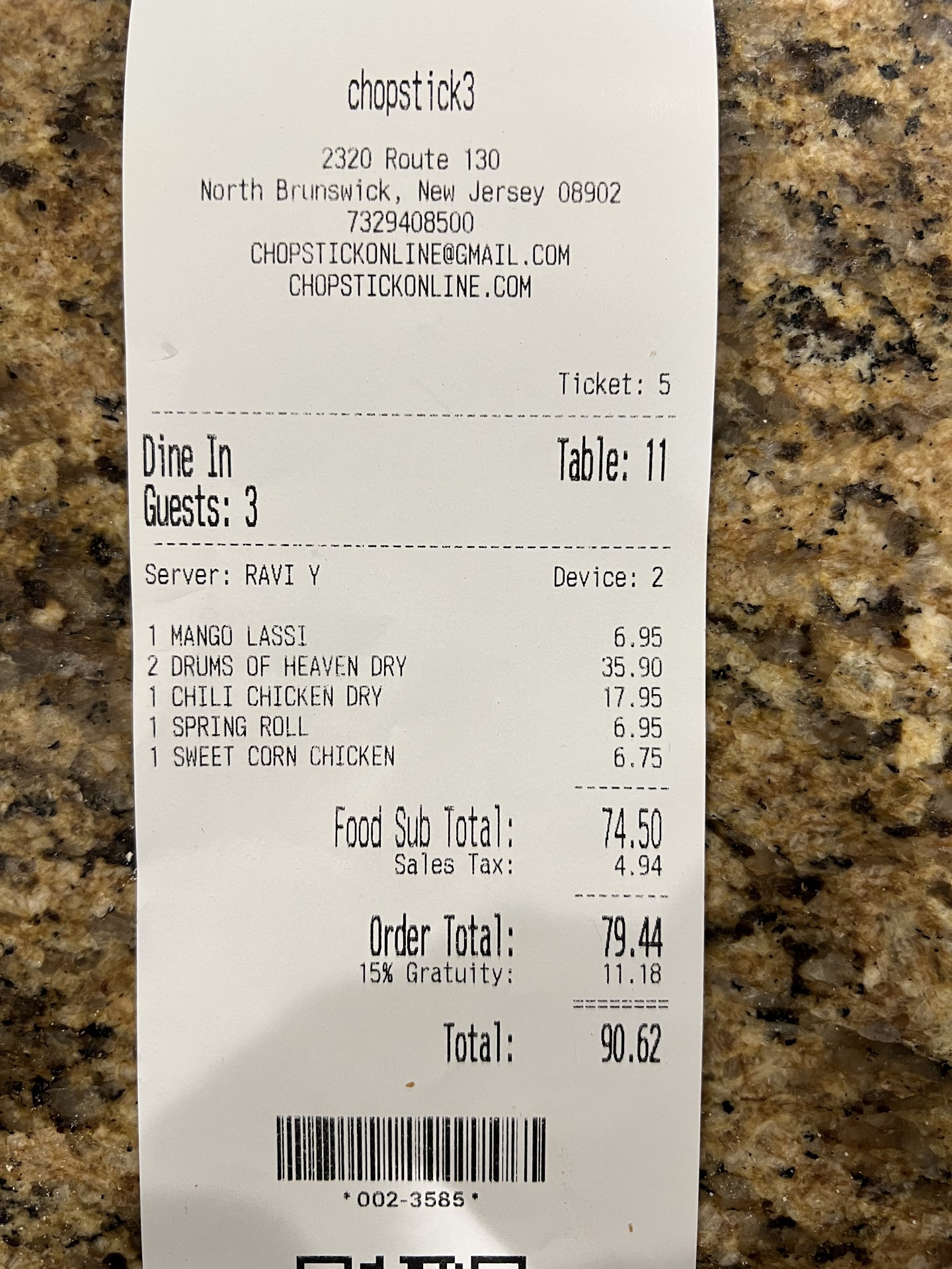 We were exploring Indo-Chinese restaurants around us and decided to try Chopsticks III. While the overall experience was good, I want to highlight the positive part of the owner hosting and engaging with guests and sharing insights as the most delightful. Other than that, the ambience with a good choice of color scheme of white and gold uplifting the visual perception of what I would consider an over optimized space, with welcoming music. Would however be hard to move around if the restaurant was fully occupied given the challenges we had to seat just 6 people and moving food around. When it came to food, in appetizers, what our family overall found reasonable was Dry Chilly Chicken and the Veg Hakka Noodles though we have had experience of having better. The others like Paneer Satay was disappointing in taste while the Chicken Lollipop was outright sad and didn't even seem like chicken. It was the saddest dish we probably had anywhere so far. Our second round was perhaps a bit more challenging with a mistake of having requested less salt, given most dishes tasting bland or rather disappointing and we had to add the chilly vinegar and sauces giving it some taste. We were very disappointed with the entrees, all though the owner did share health benefits that we did agree upon, like not using MSG or Maida which we definitely felt were healthier choices. But the fact remains that we have options to eat healthy at home and would perhaps look to satisfy our nostalgic taste buds on such celebratory rendezvous. We didn't have the heart to say anything about the food since the service was good with the owner paying regular attention, though there was only one other family apart from us, and the restaurant being open on the Christmas evening which in itself seemed to be a bonus. While we most enjoyed the conversation with the owner, in my humble opinion, a good restaurant would let the food talk for itself and do the word of mouth, rather than raise a question if it is a second...
