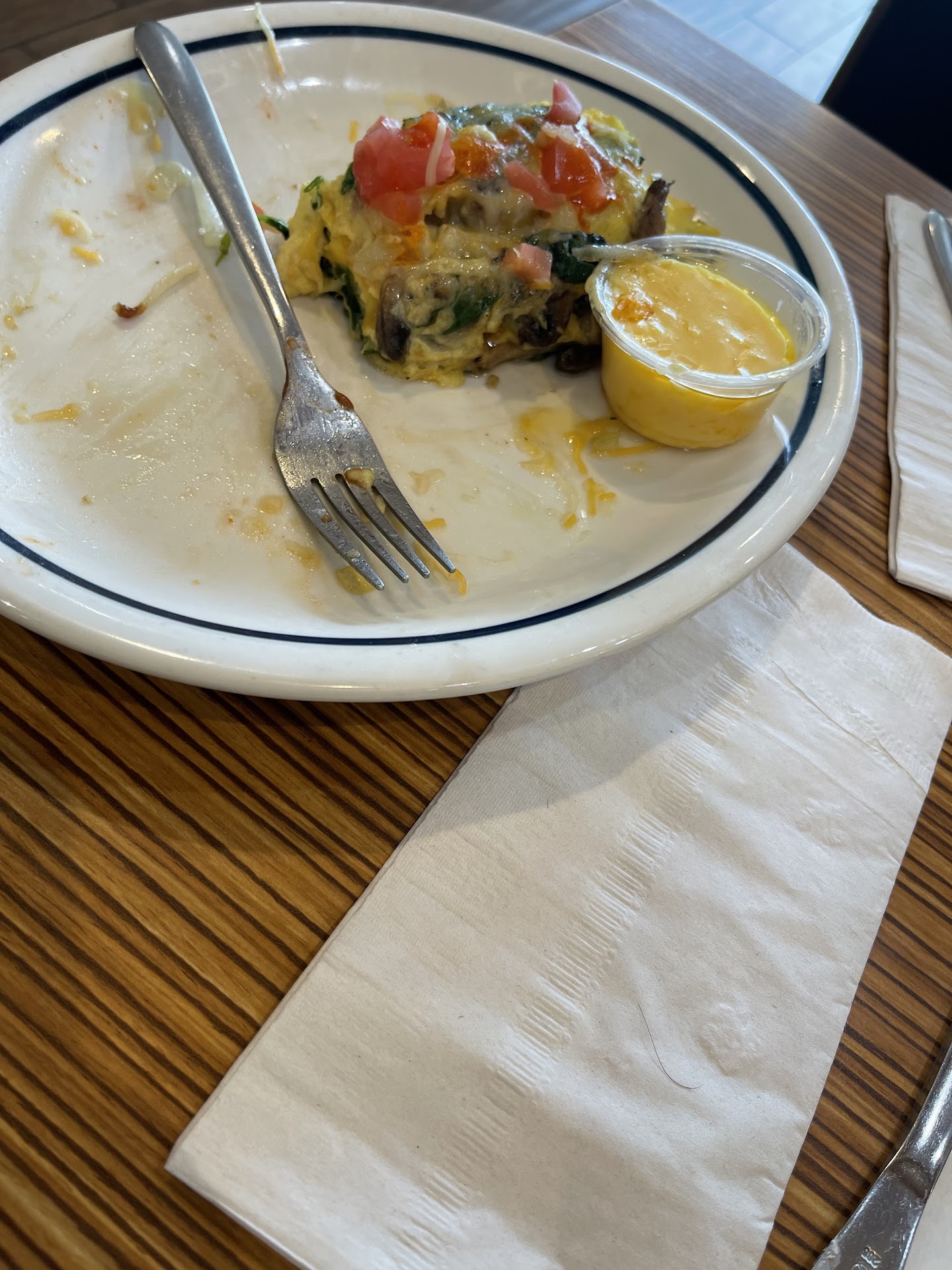 Read moreterrible experience... ordered spinach & mushroom cheese omelette along with a few other breakfast meals for my family. Upon eating egg omelette i noticed a small hair in my food. I called my waiter to let him know the situation and let him know i would like them to remove that item off the bill. With-in 5 mins a manager ( bald head guy ) came to my table, very unprofessional, never gave his name or title , in which I didn't even know he was a manager until I asked for another manager. He asked what was the problem and i explained to him , while I was eating we found a hair in my food. He then asked to see the hair which i had on the napkin to show them, he immediately stated ( well its not one of our hairs ) and that he can offer me a discount. I refuse the discount and said honestly i dont care who hair it is, im not paying for that meal. He then stated he can make me a fresh omelette and I said no thank you, I told him I already lost my appetite. he then continued to offer a discount and i said no i dont want a discount I want my bill with that 1 meal removed. He then went on to say he not taking it off and if I dnt pay he will call the cops. To make a long story short, I never experienced such bad service especially dealing with hair being in food. Never again will I return to this location!!!! And that so called manager needs training on how to actually be a manager ,handle manager situations, and...