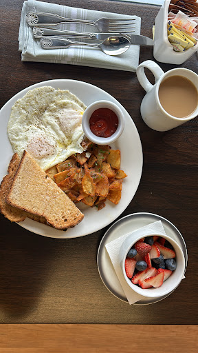 • The food was really good! I got a traditional two egg breakfast with potato hash & a side of fresh fruit. The potatoes were seasoned very well however a bit of a salt bomb for my palate.