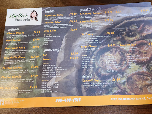 Read moreWe visited Bellas on Sunday April 7th for an early lunch. We arrived just after opening so we could get a spot, since the restaurant has been really busy since it opened. I ordered the chicken fingers and homemade chips, my husband a pepperoni salad and our son got a pizza. All of us enjoyed our meal, we ate everything on our plates, it was so good, and affordable. We also saw them preparing several take-out orders too. The interior is fresh and clean, bright, and a cool vibe. It's a small space, so be sure to plan ahead! We look forward to enjoying future meals and drinks on the deck when the weather gets nicer. A great addition to Plain Twp and Oakwood Square, run by a great Plain Township Family! Wishing them...