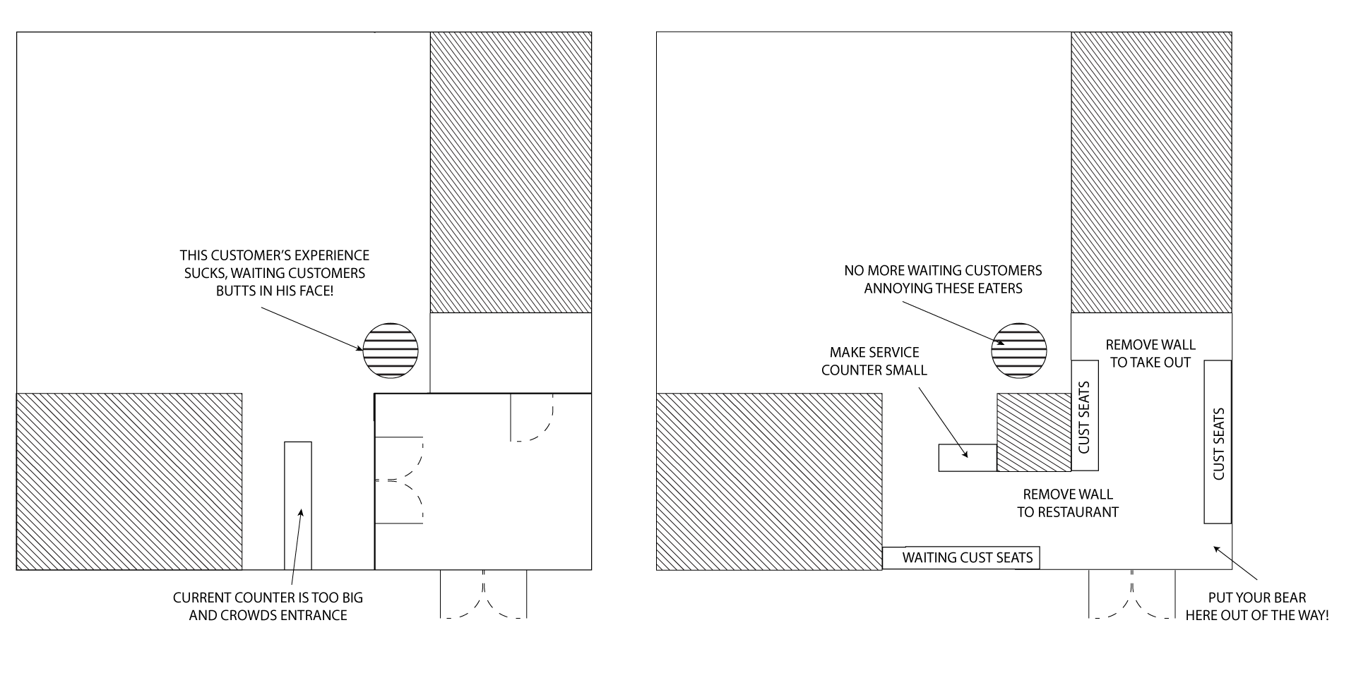 For the owner: Please, please, please fix your entry area, currently its going to drive away so much business, including my own because I have handicapped folks who can't stand 30 mins waiting for a seat when youre busy. I have attached a picture (I know the scale isnt exact, Id have to come back and measure to give you something more accurate - and would if you'd like) but you absolutely have to fix this. You can't get in the restaurant area once only one family of customers is waiting, the doors/walls are far too cramped and poorly laid out. I suggest removing both the wall/door to your pizza pickup area and the interior set of doors/wall going into your restaurant. I know this presents a possible issue with cool air coming in but you can counter that with an above door heat blower to keep the cool air out. In the attachment below you can see my recommendations: your host counter is currently far too big and useles, move it to separate incoming customers from the restaurant, this helps keep waiting customers' butts out of your eating customers faces in that corner table, if I had that corner table id instantly leave currently. People enjoying their meal dont want to see people milling around nearby. remove the extra wall to the pizza pickup, the window/counter is sufficient, this opens up the entry area to allow for some seating on the right wall as you enter remove the doors going into the restaurant. This allows you move that counter as suggested above and add some seating for waiting folks along the west wall, with the extra wall I propose near the host counter it will block a direct breeze into the eating area.