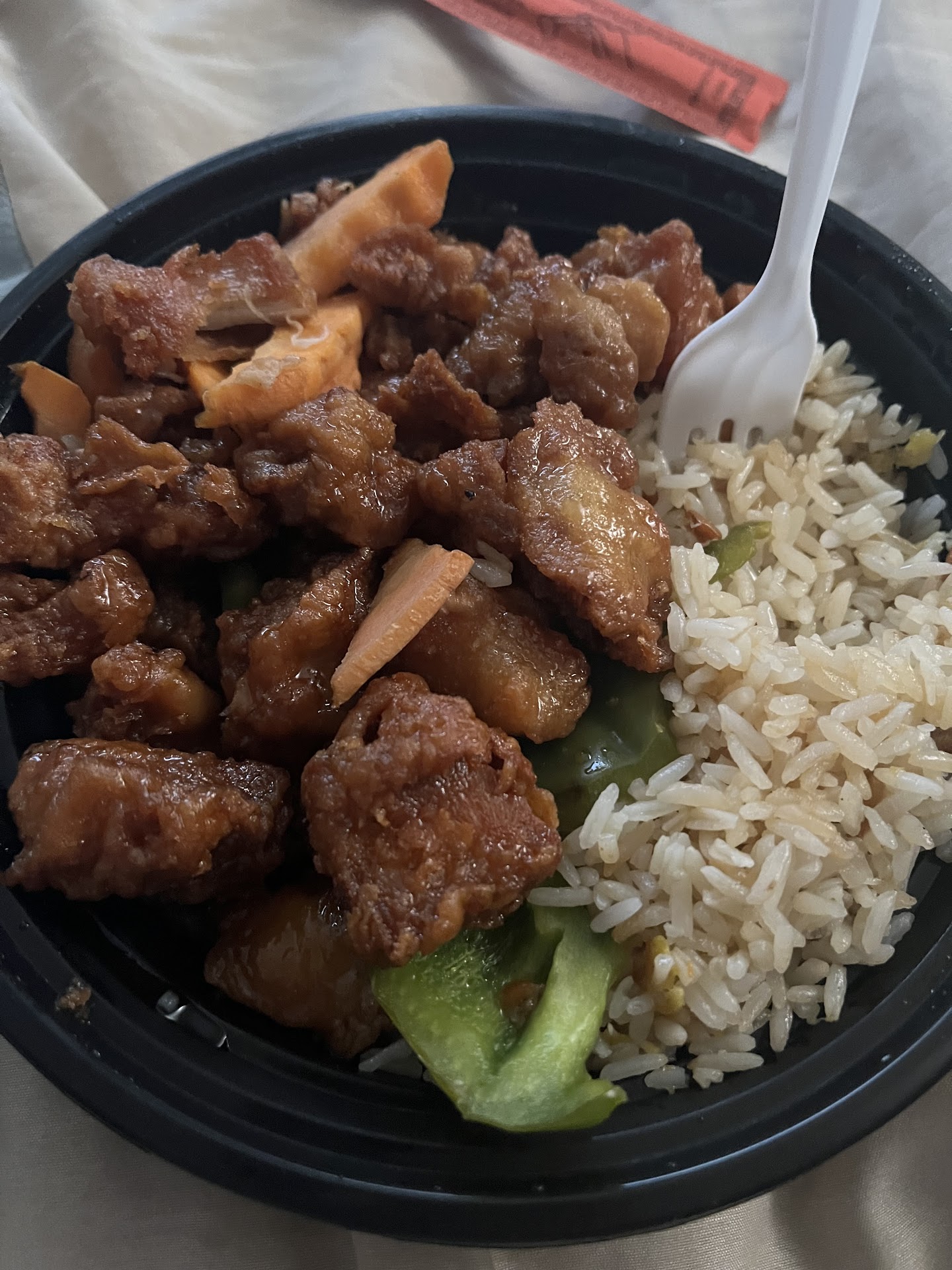 Cons: the chicken was DRY...all of it. Everything was underseasoned. Dishes that were supposed to be spicy were not at all (even asked for extra spicy on the general's and it still wasn't much). The sweet and sour chicken was already sauced and was packaged together with the white rice, which soaked up a lot of the sauce (not necessarily all bad, but certainly not the norm).