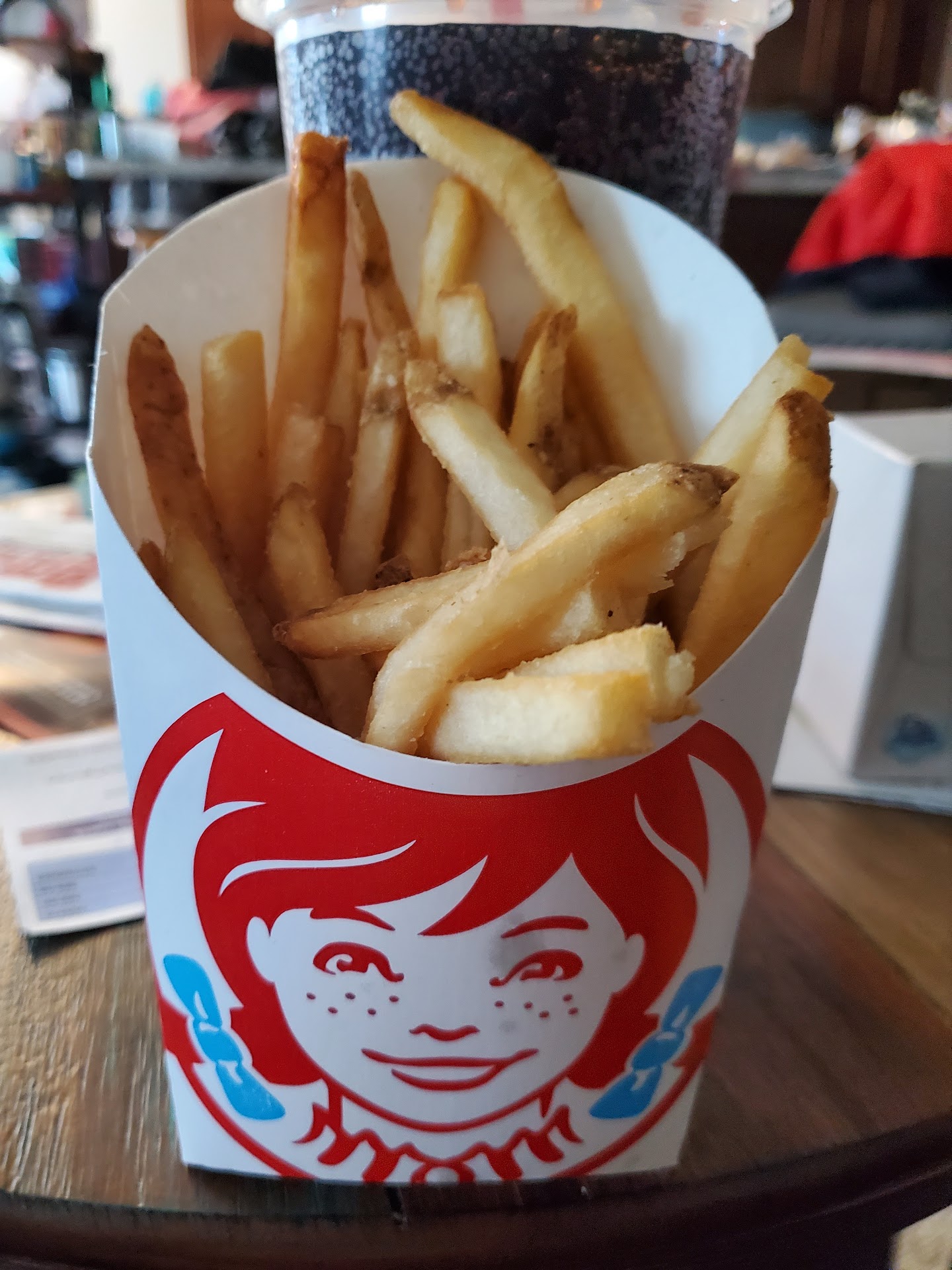 Read moreUnacceptable and strange visit yesterday. Only one table inside had diners seated, no one was ordering at the counter. We approached the counter, as the workers were in the middle of a loud conversation. They continued their conversation, although one kept glancing at me. After a minute, the girl who was on register (I had no idea she was supposed to be, as she was trying to open a sleeve of cups, and had not even LOOKED at us standing there) noticed us and said - quite unbelievably - "I'll be right with you" as she continued to try getting the plastic sleeve off the cups. Hon - PUT THE CUPS DOWN AND TAKE OUR ORDER. Our fries were dark brown, and looked more like burnt ends than normal Wendy's fries. My daughter's Asiago Chicken Club had no bacon, but she didn't want to go up and get it despite my urging. Asked for ranch and honey mustard for our order, got one ranch. Weird visit. Kids - pay attention to the customers and their orders. Your job is not a social club. At least it's not...