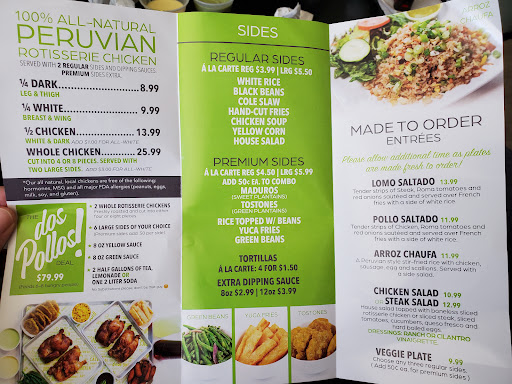 Read moreDisappointing today. One plus, the food is good. Now, the minuses: 1. Overpriced. Almost $30 for very small servings. Most Latino Restaurants give you ample serving sizes, these are chintzy. 2. A small size half chicken (which normally serves two people) came with 5 yucca fries ( so 2.5 fries per person) and 4 small tostone ( 2 pieces per person). 3. I had to wait 15 mins for them to cook the 4 pieces of tostone when there was no one wtg for food in front of me, until finally one of the girls yelled at the other girl to at least give me my other food so I could pay and sit down while I waited on the tostones. 4. The chicken has good flavor but is on the verge of being under cooked 5. $4.00 for a horchata that was 8 ounces - I literally measured it when I got home bcuz I was surprised at how small it was (Los Cuates gives you 32 ounces for the same price) 6. $7.50 for 2 cookies that were not good.( Other places give you two cookies for $1) 7. And the plastic sauce tops don't want to fit on the containers so you risk them leaking all over the place. I LOVE Hispanic food, was raised by a Latina and have been eating it all my life so maybe this review sounds a bit pet peevy, but for the prices they are charging, these are things that can and should be fixed. Either that or the novelty of this new place may fall by the wayside and this restaurant go under like so many do...