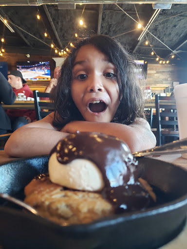 Wrapped up our meal splitting a jumbo cookie for dessert. Seriously love a fresh warm cookie! š„ Crunchy bottom, ooey gooey middle, topped with vanilla ice cream and chocolate syrup! Yum Yum!! Will definitely order that again, but without the chocolate sauce topping.