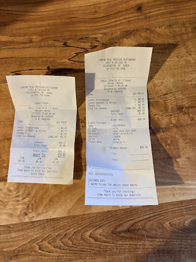 Ordered the lunch steak fajitas and the lunch steak burrito with the Camino Real special sauce. Both lunch meals came with a side as it’s typical for Mexican restaurants. I had the rice with the steak burrito and the steak fajitas had the refried beans (loaded with cheesy goodness). I must say the burrito sauce was another cheesy surprise I was not expecting.