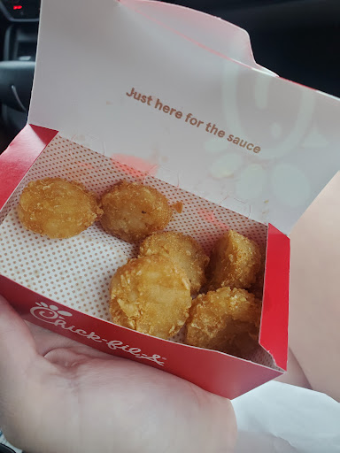 Ā Ā Ā Read moreAs a frequent customer at Chick-fil-a I would say that this Chick-fil-a was pretty bad compared to other Chick-fil-a restaurants I've gone to. I left pretty dissapointed since it was my first time dining in ever since the pandemic cause all the Chick-fil-a's to close their dining rooms. The service and staff. I feel like this restaurant was understaffed. There were two cashiers. One was working hard and they were busy with all the drinks for the customers ahead of me. The second cashier in the other hand was talking to what looked like their friends. Thier conversation lasted the whole visit. The line indoors was pretty long and with only one cahsier it made me uneasy seeing that no other employees where helping the one cashier out. For the food, it was not dissapointing. The chicken patties were the perfect portion. The sweet tea could use some work but it was good. The fries portion was small. For the cleanliness of this restuarant. It was the best thing during my visit. The bathrooms were not messy nor was the dining area. The floors werent sticky but they were a little bit slippery. Overall this restaurant is below average for a Chick-fil-a. This place is still a good place to visit if...