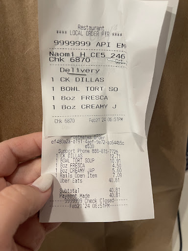 Read moreI ordered out today and I thought everything was going smoothly until I got home an hour away and realized what we discussed on the phone wasn’t all in the bag. Which is partly my fault which is why I still gave 3 stars bc I should of went inside like I normally do and check the whole bag. I was getting take out for myself and two new people to Chuys. I worked for Chuys for 3 years and I have been talking them up for the longest time. So I had asked the take out guy if he would at least put two big bags of chips in my order, and that I would even go as far as paying even though I know they are free. He said that was fine. I ordered two large bags because I ordered 3 meals and one 32 oz salsa and one 32 oz creamy jalapeño. I only received one bag and I felt bad because I feel the split of the chips was not fair on the family I dropped off 1/2 the food at on my way to my house. Also I’m a little upset that Chuys changed their recipe on their chicken tortilla soup. They seem to no longer be grilling the corn and they added carrots. Luckily I’m only allergic to raw carrots. I really love the way the grilled corn flavor gives the soup. The soup in general was still pleasing though. I just feel I didn’t get to split everything fairly tonight. Next time I will just go in even if it’s cold and busy. I still love Chuys- just check your bag (always).