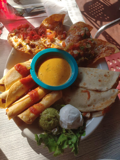 Read moreD: The music was great. I came here with my mother and my eldest daughter. Service was great the waitress shared her favorite dishes and made a couple of recommendations. Mom and I shared the appetizer plate. Daughter ordered the Chicka Chicka Boom Boom enchiladas. The $5 margaritas were sweet but not enough alcohol for me. The food was consumable. I took the jalapeños off the nachos before my mother could see them. There was very little flavor on the nachos other than cheese. The chicken flautas were crispy but tasteless with very little chicken in them. The queso in the middle was soupy it was as if they added water to it. The fajita chicken quesadillas had a black sauce on the inside that made my mother gag from the spiciness, other than being spicy there was no flavor and very little cheese not enough to call it anything more than a soft taco. The eldest daughters dish was surprisingly good. The enchiladas without the boom boom sauce would have been tasteless but the sauce added plenty of delicious flavor. The rice was a tex-mex blend which together with the beans were something to remember. Due to the price of each dish along with the tasteless food I wouldn't take my family back here. While ultimately it was just about hanging out with the ladies in my life I was a more than a bit dissatisfied with the food. I would suggest adding more flavor to your food as unseasoned chicken breast is usually a bad idea. Keep the servers that know the menu and are personable that part was great.