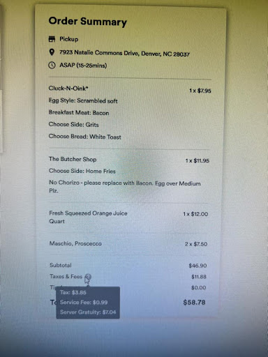 We enjoyed a nice Motherās Day brunch. My sister-in-law had the Meat Lovers Omelette. The home fries were delicious (I tried some), I think the best I have ever had anywhere.The seasoning was sublime.