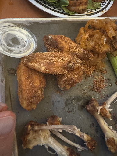 Overall, the food was okay. We ordered a smattering for the five of us (two adults and three kids) including the special pierogis, coconut shrimp, peel and eat shrimp, dry rub wings, onion rings, pretzel bites, house salad, and a kids chicken tenders and fries. Probably the best part of the meal was the peel and eat shrimp and the onion rings. The special pierogis were maple bacon, but they were so sweet, they were basically dessert. The dry rub wings were seasoned after they were cooked and they were over seasoned. The order came ten wings to an order and I wanted to split flavors, but they wouldn’t do it. The salad was over dressed. The coconut shrimp were decent, but mostly breading. The fries on the kids plate were undercooked and the pretzel bites were overcooked.