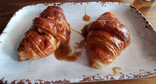 We finally placed our order and the complimentary croissants with honey came out. They were hard as rock and not edible. Waitress disappeared for 15-20 minutes at a time. After not getting our simple order after 40 minutes, I flagged down the waitress. She seemed surprised we expected food already since the single table of 5 was "ahead of us", and they had just started our order!