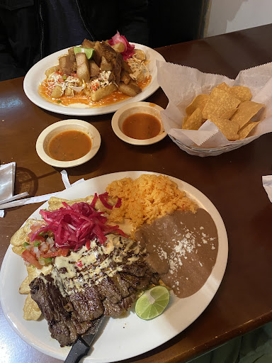 Read moreWe came in on a Friday night, around 7pm, expecting it to be super busy but no! The pleasantly decorated restaurant was nearly empty, which is surprising with how good the food was. Once you're seated, they immediately put out some chips and salsa. The one on the left was spicy, the one on the right was what you would expect from other Spanish/Mexican/Latino restaurants. Both very pleasant, and both had cilantro. I got the bottom meal, something with steak and plantains (I cannot remember what it was called) and my partner got the top meal that was something with pork. It was all very yummy. I also got a drink called Jamaica which is a fruity hibiscus drink and it is SO good. I got a to go cup to take home with me. All in all, the service was quick and prompt, and our server made sure that we got absolutely everything we needed, along with answering any questions...