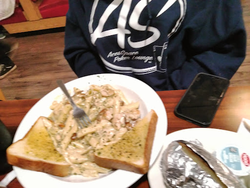My daughter decided she wanted to try this place since it was a newer restaurant and see how it was. Well when we got there we were seated almost immediately then set there several minutes before being ask about drinks. They weren't terribly busy, but it looked like they may of been short staffed because our waitress had tables in multiple places. This wasn't a big deal since we were still waiting on a few people to show up. Once they arrived it took roughly 10 minutes before the waitress came over to take their drink order. We got the Chicken Alfredo, Buffalo chicken wrap, Chicken quesadilla, and Broiled catfish. The Chicken Alfredo was a big heaping of noodles and sauce with some grilled chicken. The chicken in it was delicious! The noodles and alfredo sauce not so much. It lacked seasoning and especially garlic. It was very bland tasting. The Buffalo Chicken wrap was a good size, but was very runny with I'm guessing water from the lettuce that wasn't dried off after washing. This kinda killed the flavor and made it soggy to try and eat. The chicken quesadilla was decent sized, but lacked much flavor and only a tiny thing of salsa came with it. The lettuce and tomatoes that came with it looked old and she didn't eat it. My catfish was bland, but the broiled stuff tends to be that too be on the healthier side so I didn't mind and with the lemon juice it helped add a zing to it. Three people got fries and they were basically thrown in a frier then put on a plate with zero seasoning. Overall our first visit was a bust and likely our last visit! For the prices you'd think they could throw a little seasoning on the food to make it appetizing! I recommend you seek elsewhere for dinner if you want flavorful food and...