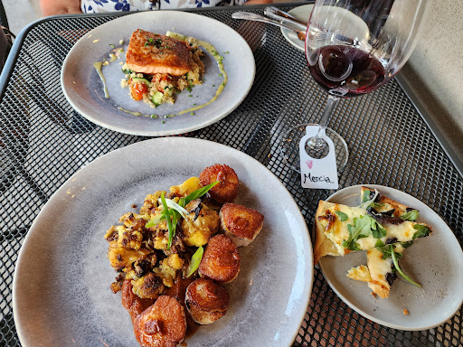 I don't think I have ever seen such a great wine selection in any restaurant before. I came here this past week with my husband and we loved everything from start to finish. We made reservations and did not specify for indoors or the patio, and it was nice the young gentleman asking us which we preferred when we walked in. We picked the patio and it was so nice out there. They have fans running which really helped keep it cool while sitting out there. Our server was a young women who was very knowledgeable and helped us with every selection we made from wine to food. It was very busy out there, but she made sure to spend enough time to where it felt very personable and clearly you could tell she likes what she does. We started with the Pinot flight off of her selection and it was a great pick. She recommended the Ricotta to start for apps and it did not disappoint. The slight flavor of lemon was so delicious, I could eat that every day! We asked about the specials and though they sounded delicious, she recommended the Rigatoni and to add scallops. This dish alone deserves its own review. It was one of the best pasta dishes I have had in a long time. The sauce was creamy enough but still so perfect with the tomato's and fresh garlic in it. I will be coming back for this dish monthly! My husband ordered the Flank Steak which really had such a great spread with it. It comes with a home made corn brûlée and then a cool summer squash. It came out on this really neat wooden tray too! The steak was the perfect size with the 2 additions of sides. It felt like a summer meal all that it had to offer! For dessert the recommendation was the home made coconut cake, with home made caramel sauce. Yes, read that again. All of it was home made and it was AMAZING. The slice was HUGE, so of course I shared a little with my husband. That alone is something that will keep my coming back, and I hope they keep it all year round. We ended the meal enjoying a glass of the Correspondence Pinot Noir that our kind server recommended and it really was perfect for a warm summer night. We definitely will be coming back as I can not wait to try more wines and more food. From start to finish, service was excellent. The young gentleman who greeted us at the door was so kind. The food was fantastic. Well done FoxCroft! We will...