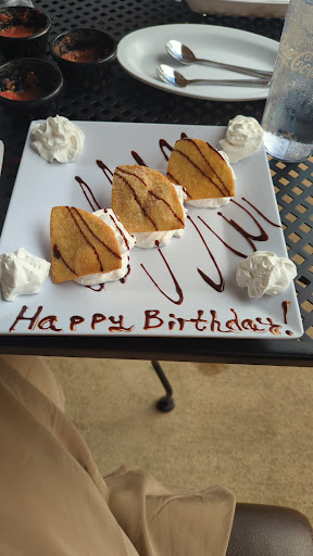 Went for Taco Tuesday with my wife. I always like to have free salsa and chips when you sit down. They have four different salsas, mild tomato, spicy tomato, green tomatillo, and orange habanero. These last three are spicy, but not over the top (I like spicy; if you canāt handle too much āspicynessā stick with the mild). The homemade guacamole with jalapeƱo was very good and not too spicy. I like mine with more onion and garlic. For Taco Tuesday, they offer 4 kinds of street tacos for $1.99 each; grilled steak, grilled chicken, shredded chicken and āgroundā beef. The chicken is chicken breast. There is a choice of homemade corn tortillas or non homemade flour tortillas. Of these I liked the shredded chicken, which was more moist and had (a tiny amount) of green sweet pepper, and the āgroundā beef ( I put quotes around āgroundā because itās not hamburger, itās more like stewed beef which has then been minced) which was juicy and flavorful. I also note that unlike some restaurants that give you barely any meat in your taco, these were filled a reasonable amount. You can top the tacos with any two of onion, cilantro, lettuce or Mexican cheese. For dessert had the fried ice cream and the churros ( for the churros we tried both Oreo style and regular style with chocolate filling. The Oreo style didnāt do much for me and was chewy. I like a crisp churro. The plain with chocolate filling was less chewy, but next time I think Iāll try them unfilled). Our waitress was a sweet young girl, and all the staff were friendly. The dining room we were in was fairly basic. They also had margarita specials for $3 and $5 which...