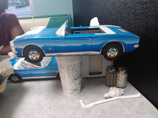 Read moreFrom the black and white checkerboard floors to the pink and teal upholstery and walls, this is a very clean and efficiently ran restaurant. I love the lemonade here, so that is my drink of choice. Itâs not overly tart or super sweet, itâs just perfect. I find it even better than where they have chicken and pickle sandwiches. I chose the Pimento Cheeseburger for dinner. The bacon was cooked perfectly, as it wasnât too limp or extra crunchy. The housemate pimento cheese was good, I would have just liked a little more of it on my burger. My fries were good, but the tots my dining companion had were better. Our server Nadyâa was terrific and made our diner more pleasant with her smiles and...