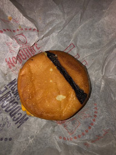 Read moreI've included pictures for reference! I wish this could be a positive review. I'd love to of had some of the experiences others have had with 5 star reviews. After the service and food I got I wish there was a no star option. I went here at 8:42PM and placed an order on the app with curbside delivery. This is the second time I've been here and I had a similar experience the first time. Being the person I am, I wanted to give them a second chance. The man who brought my food came out the door with the appearance of an attitude and addressed me as such when he approached my car to give me the food. When I checked my food before I left the fries were cold and had the appearance of being old. I went through the Drive-Thru and explained that my fries were cold and old. This didn't come as any shock to the person on the other side of the speaker as I was directed to pull around for another order of fries. The same man was at the window when I picked up my new (still old) fries. He rudely said here shoved the bag at me and slammed the window. When I checked the new fries I wasn't surprised to find that they were also old in appearance just warm instead of cold. All fries went in the trash as soon as I got home. Then I opened my burger to find a HUGE SCORCH MARK on the bottom bun that didn't just smell burned but smelled like a cigarette! After this experience I won't be going here anymore and I hope they improve their service and quality of food. People spend money for food that's fresh and expect decent service since said money goes into the employees...