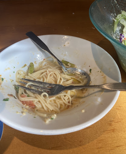 Unfortunately, we didn’t enjoy the food. The “unlimited” breadsticks tasted very bland without any flavor & seemed underbaked since they felt soft & doughy. We dipped them in the two sauces that came with our fried calamari appetizer, though that didn’t help much. Furthermore, the first basket of breadsticks that was brought to our table only had 2 breadsticks, & there were 2 of us there— just 1 each; we weren’t offered another basket until after our entrees already arrived, but we declined because the first basket was so flavorless & disappointing. 👎